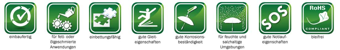- max. Gleitgeschwindigkeit (geschmiert): anwendungsabhängig