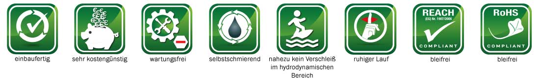 - nahezu kein Verschleiß im hydrodynamischen Bereich