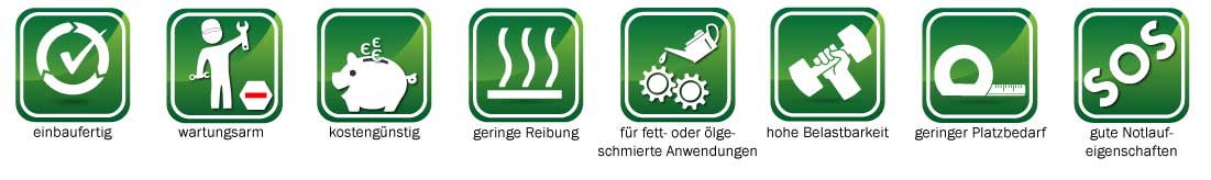 Reibungskoeffizienzt (ölgeschmiert): 0,05 bis 0,12 - max. Gleitgeschwindigkeit (fettgeschmiert): 2,5 m/s