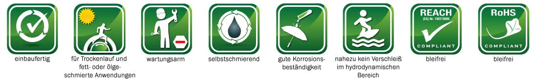 Reibungskoeffizienzt (geschmiert): 0,02 bis 0,07 - max. Gleitgeschwindigkeit (trocken): 2,0 m/s